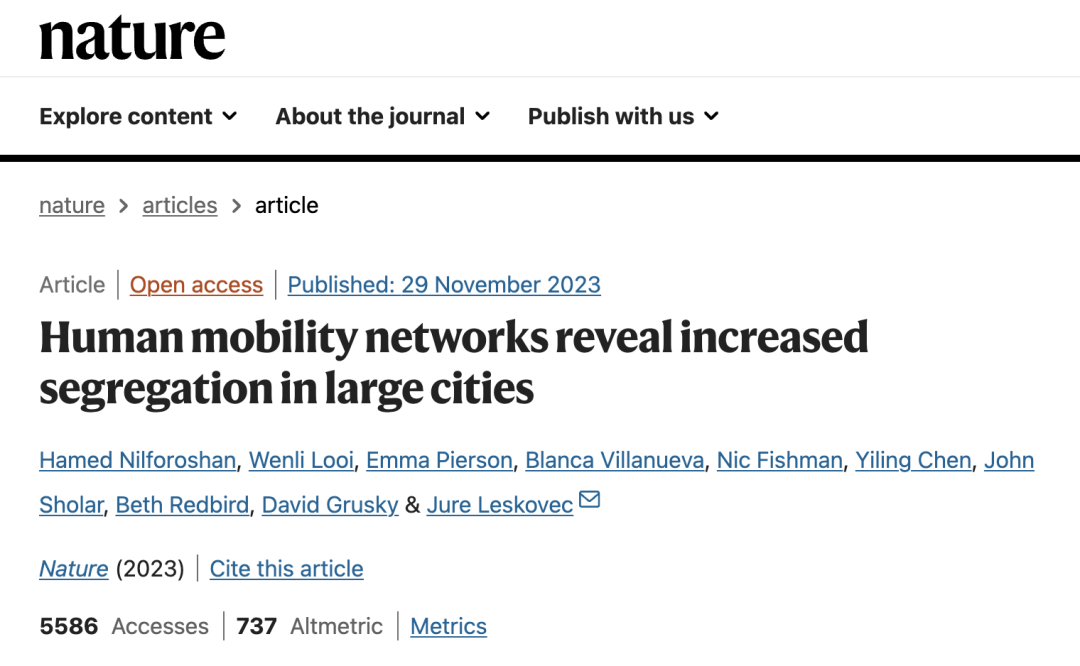 论文题目:Human mobility networks reveal increased segregation in large cities