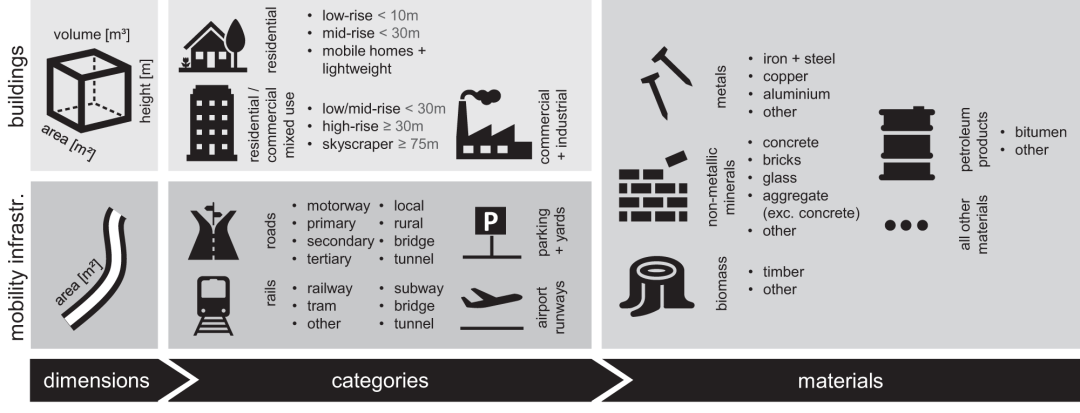 研究结果为人类主导的景观结构、不同居住模式的材料强度驱动因素提供了重要启示,也为资源效率更高的循环经济中潜在的“城市矿山”提供了空间解析信息。人口因素,首先是国内移民,以及人口密度梯度和不同居住模式下的高物质强度与低物质强度之间的相互关系,在分析中展现了对地貌的显著影响,这对于设计减缓气候变化的战略非常重要。制定和实施降低资源使用和温室气体排放的战略,可以从考虑建筑结构的空间模式及其驱动因素中获益匪浅。