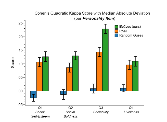 图3:预测个性特征时,life2vec模型的表现优于RNN等传统模型