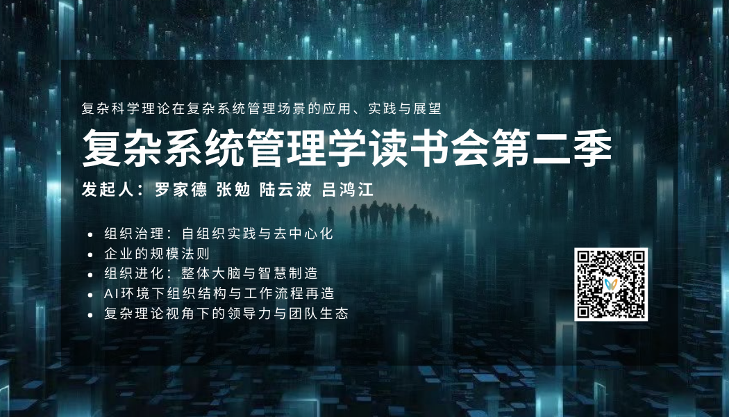 同时,复杂管理学读书会第三季正在筹划中,其将更加注重实际案例与理论的结合,包括但不限于数字化、公益、医疗、仿真、组织创新与教育等多个领域。欢迎大家加入复杂管理学系列读书会,共同畅想与讨论复杂管理学读书会第三季的未来!