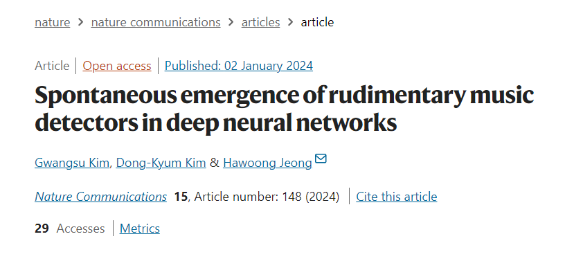 论文题目:Spontaneous emergence of rudimentary music detectors in deep neural networks 论文期刊:Nature Communications 论文地址:https://www.nature.com/articles/s41467-023-44516-0 斑图地址:https://pattern.swarma.org/paper/8a604668-aadf-11ee-bc79-0242ac17000e