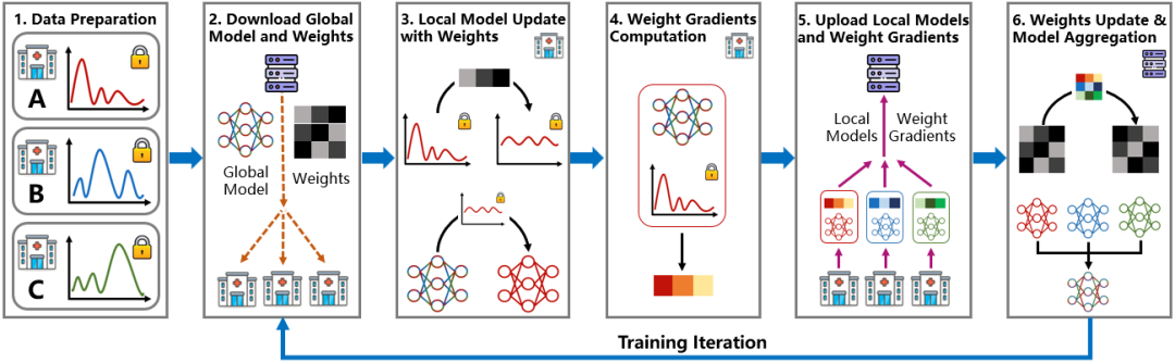 图2:面向医疗领域的公平联邦学习统一优化框架流程图