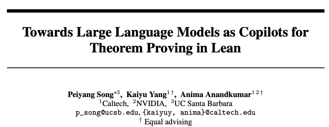 论文地址:Towards Large Language Models as Copilots for Theorem Proving in Lean,https://mathai2023.github.io/papers/4.pdf