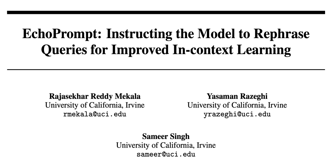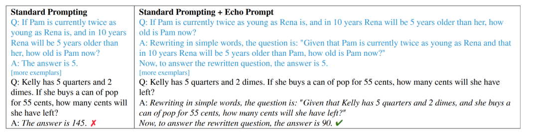 该文章提出了 EchoPrompt,一种通过让模型在回答问题之前重新表述查询来提升性能的简单而有效的技术。该技术适用于零次提示和少数示例提示的场景,并且能够与标准提示以及思路链提示结合使用。实验结果表明,EchoPrompt 在多个因果语言模型族的各种设置中大幅提升了性能,包括数值推理(例如,GSM8K, SVAMP)、阅读理解(例如,DROP)和逻辑推理(例如,翻硬币)等任务。特别是,它使得 code-davinci-002 模型在零次提示的思路链环境下,在数值任务上的性能提升了 5%,在阅读理解任务上提升了 13%。这些结果显示,EchoPrompt 可以有效地加强在上下文学习过程中的表现,建议将其融入到各类基线提示策略中,以提高整体效能。