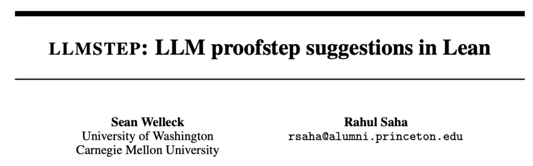默认地,llmstep 基于开源模型 Pythia 2.8b 使用 LeanDojo 数据集进行微调,但具体实现与模型无关,因此支持使用任何语言模型。