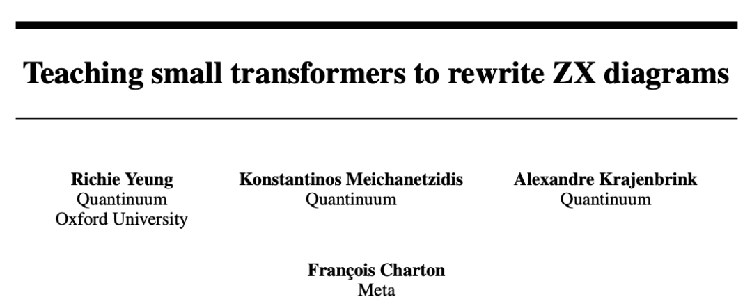 ZX 演算(ZX calculus) 是一个用于推理线性映射的图形语言。映射通过图表示,而推理则涉及图的改写。ZX 演算主要应用在量子计算领域。研究人员训练了小型 Transformer 模型来简化 ZX 图,即执行量子电路的资源优化。初步实验表明,这些模型可以被训练以高精度简化 CNOT 和 Clifford 电路。这些是最简单类型的 ZX 图,因为它们存在有效的改写策略。此外,还有证据显示,这些 Transformer 模型学会了简化更为复杂的 Clifford + T 图,而这类图通常不存在高效的简化算法。