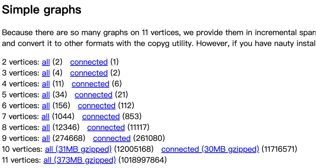 前 11 阶简单图的同构类:https://users.cecs.anu.edu.au/~bdm/data/graphs.html