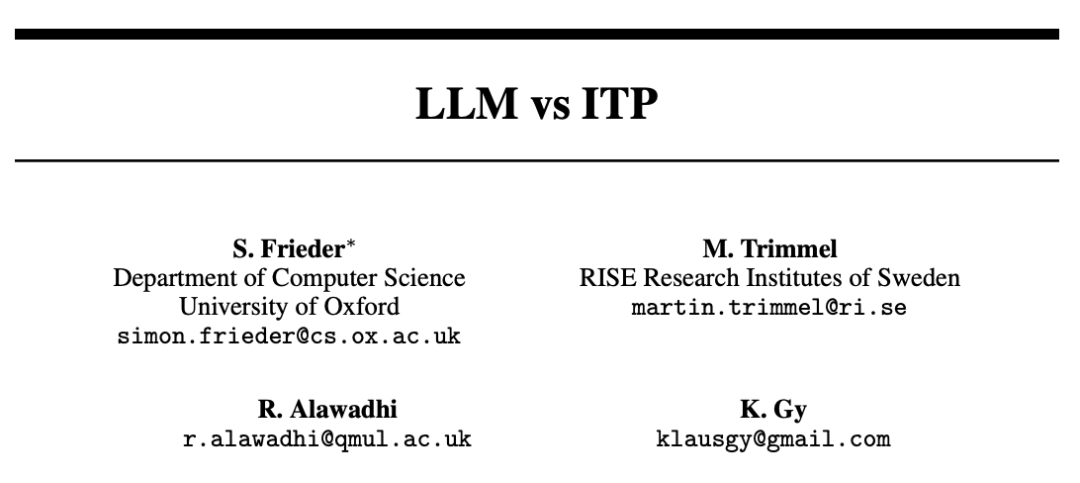 Wiedijk 的 100 个定理列表为比较交互式定理证明器(ITP)及其数学库提供了一个基准。而正如 GHOSTS 数据集所展示的,大型语言模型(LLM)也可以作为可搜索的数学库,因为它们在预训练或微调阶段能够吸收大量的数学文献。ITP 库是唯一可与其媲美的、在规模和数学复杂性范围上相当的资源库。本文以 Wiedijk 的列表为中心,提出了首次将这两种独特的数学资源进行比较的研究。除了对此类比较本身的兴趣外,文章以 GPT-4 和 Claude 2 为代表,讨论了“LLM 中包含的知识是否与 ITPs 中编码的知识相匹配”这一问题的重要性。这种分析进一步推进了 LLM 和 ITP 技术之间的交集(例如自动形式化、由 LLM 引导的证明生成或证明完成等任务),确保 LLM 除了具备 ITP 代码生成能力外,还拥有执行所需形式化的充足数学知识。这一调查结果的数据集称为“LLMKNOW”,已向公众开放。