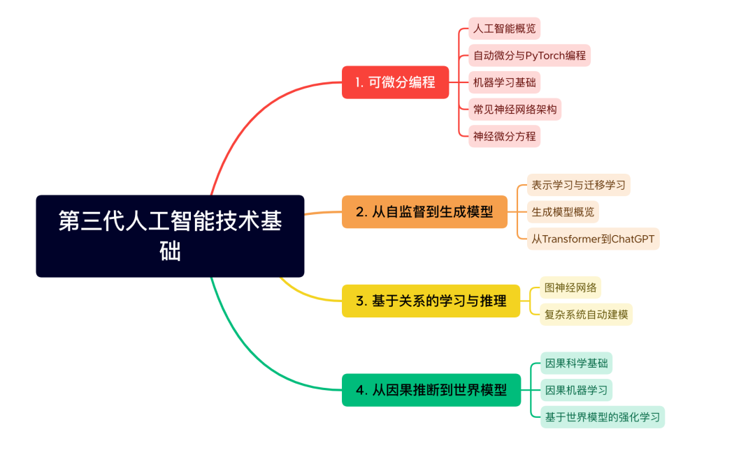第三代人工智能技术基础课,是北京师范大学张江老师2023年的新课,特别融合了生成式AI、AI for Science等技术突破背后的底层理论方法。课程系统化梳理了从机器学习到大语言模型,从图神经网络到因果推理等一系列可能成为第三代人工智能基础的技术要素,为研究者或学生在生成式AI、大模型、AI for Science等相关领域的学习和研究工作奠定基础。课程内容包括可微分编程、神经微分方程、自监督学习、生成式模型、Transformer、基于图网络的学习与推理、因果表征与因果推断、基于世界模型的强化学习等。课程时长26.5小时。