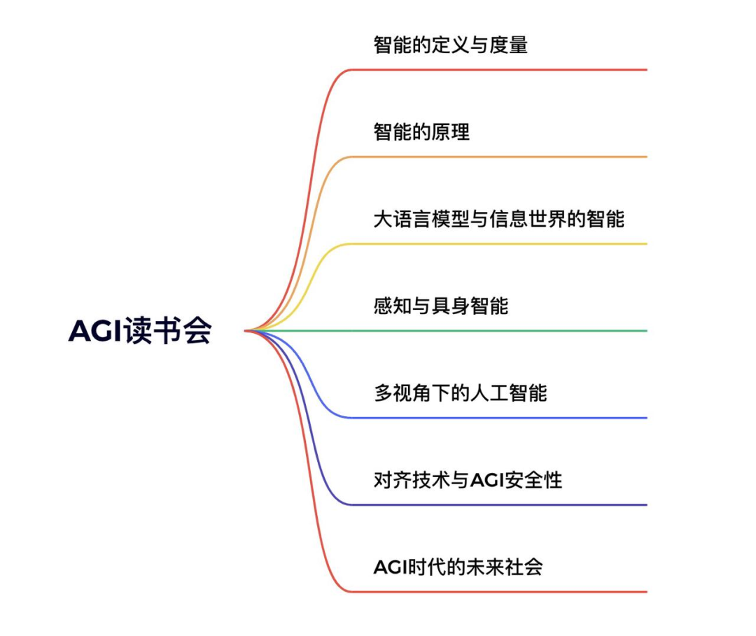 通用人工智能(AGI)读书会,围绕通用人工智能的基础理论与发展路线,梳理里智能的定义与度量、智能的原理、大语言模型与信息世界的智能、感知与具身智能、多视角下的人工智能、对齐技术与AGI安全性、AGI时代的未来社会七个板块的内容。重点梳理了大语言模型的底层机理,并针对多模态感知、具身智能等实现通用人工智能的路径进行了探讨。