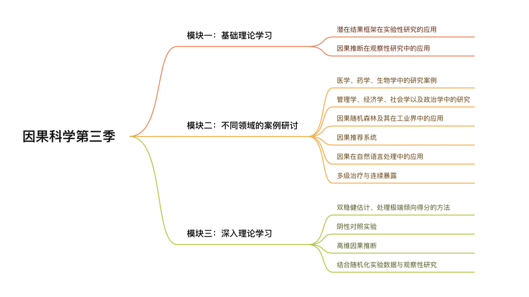因果科学与CausalAI读书会第三季,主要结合因果推断的潜在结果(Potential Outcomes)框架展开讨论,并尝试在不同领域尝试建立潜在结果框架与结构因果框架(SCM)的对应关系。这一季读书会还落脚于“因果+X”,着重梳理了近年来在社会学、经济学、医学、生物学等多领域对因果模型的应用,对复杂系统中因果问题的定义和建模。