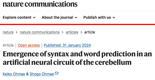 论文题目:Emergence of syntax and word prediction in an artificial neural circuit of the cerebellum