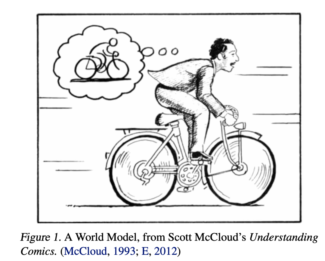 该论文中并没有定义什么是World models,而是类比了认知科学中人脑的mental model,引用了1971年的文献。