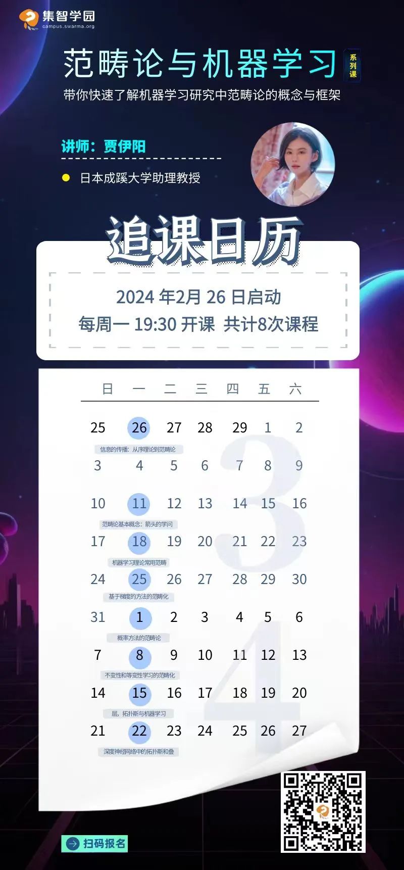 为了帮助大家对范畴论与机器学习这一交叉领域有深入的了解,理解机器学习方法背后的范畴意义,集智学园联合日本成蹊大学助理教授贾伊阳,推出了「范畴论与机器学习」系列课程,旨在面向机器学习领域并且希望深入到理论思想层面、身在数学领域想要利用人工智能解决问题的、以及希望了解一些范畴论应用前景(例如和人工智能、量子计算融合的可能)的研究者,科普机器学习前沿领域论文中出现的范畴论知识。