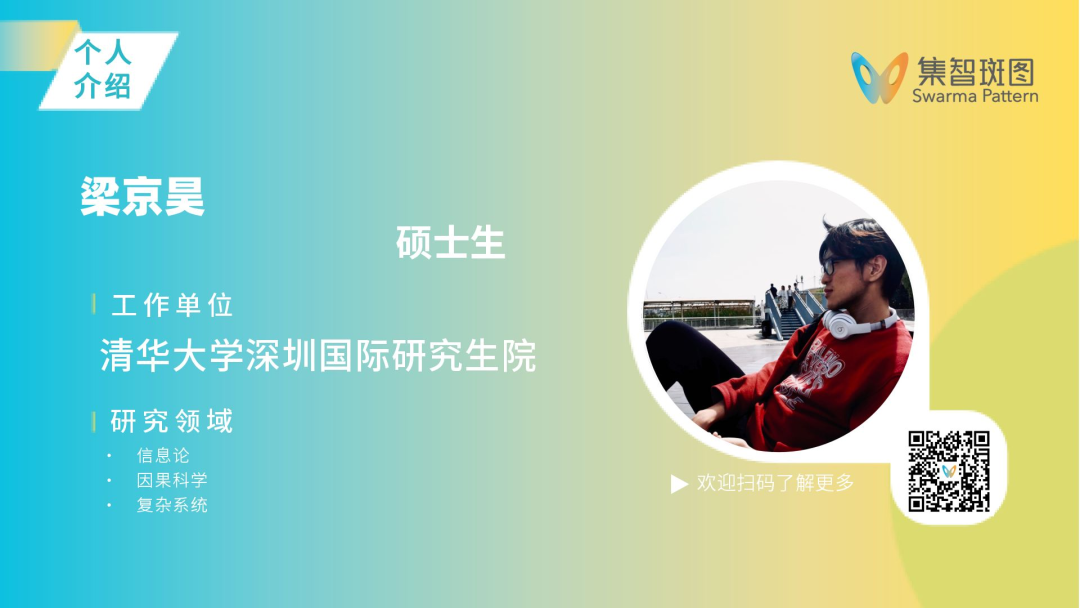 梁京昊,清华大学硕士二年级在读,目前在集智俱乐部做科研助理。研究方向:信息论,因果科学,复杂系统。欢迎有问题和讨论的老师和朋友通过邮件liangjh22@mails.tsinghua.edu.cn赐教。