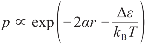 ,其中r 和Δε 分别是跃迁初末态间的空间距离和能量差,α是刻画距离无序度的参数。如果我们进一步假定无序能级的能量差与体积成反比,即Δε=cr-3,c是比例系数,则最大的跃迁概率为