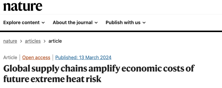 论文题目:Global supply chains amplify economic costs of future extreme heat risk