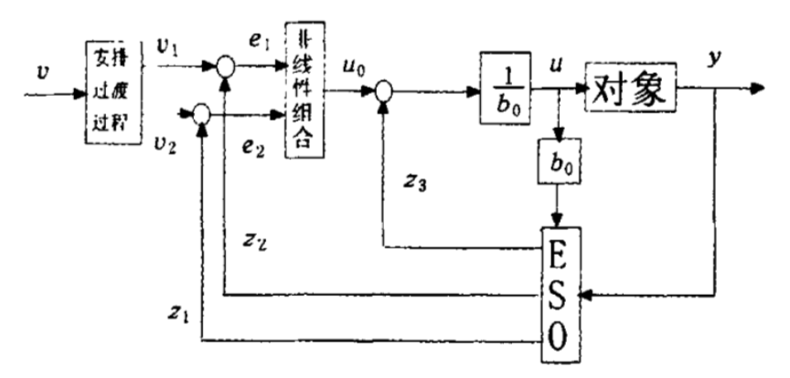 自抗扰控制器基本结构图,来源:韩京清,自抗扰控制技术,前沿科学2007.1总第1期