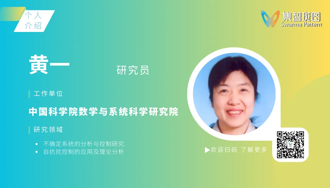 黄一,中国科学院数学与系统科学研究院研究员,中国科学院系统控制重点实验室副主任。1989 年本科毕业于华中理工大学,1992 年硕士毕业于中国科学院系统科学研究所,1995 年博士毕业于东南大学。1995 年至1997 年在中国科学院系统科学研究所从事博士后工作,1997 年至今在中国科学院系统控制重点实验室工作,主要从事不确定系统的分析与控制研究,特别是自抗扰控制的应用及理论分析。
