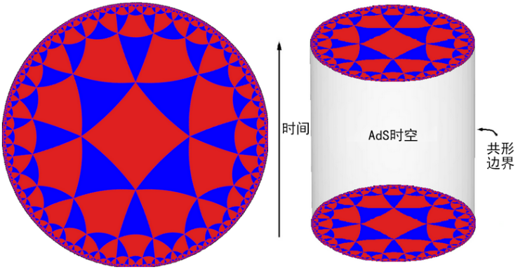 (1) 弯曲的反德西特(Anti de-Sitter ,AdS)时空中的量子引力理论。这里的反德西特时空可以视为一种具有边界的负曲率双曲时空;