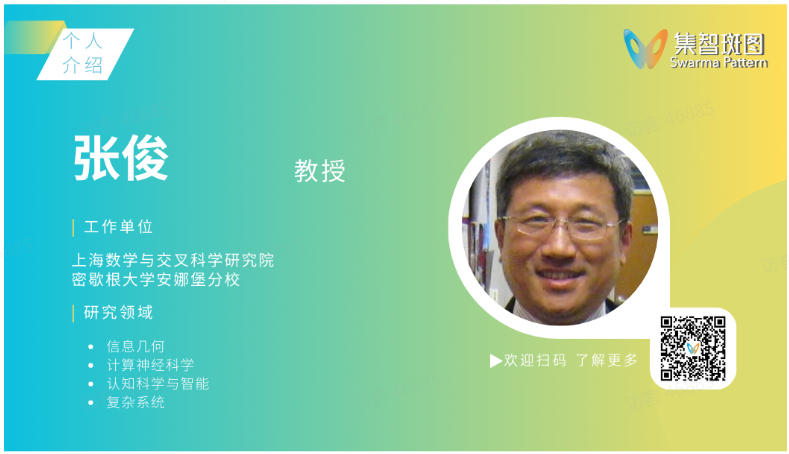 张俊,上海数学与交叉科学研究院(SIMIS)教授和创始人之一。从1992年起在密歇根大学心理学系担任助理教授、副教授、教授,并在数学系、统计系、密歇根大数据学院挂职,目前离职。1991年从加州大学伯克利分校获得神经科学博士学位。张俊教授在计算神经科学、认知与行为建模、机器学习、统计学、复杂系统等领域做出学术贡献,在数学心理学领域知名。近年来他的研究聚焦于“信息几何”这一交叉学科。