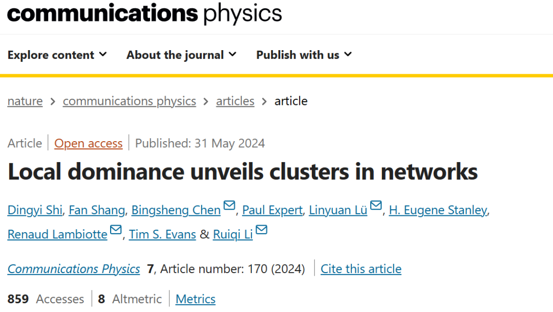 论文作者:Dingyi Shi(史定一), Fan Shang(尚璠), Bingsheng Chen(陈炳生), Paul Expert, Linyuan Lü(吕琳媛), H. Eugene Stanley, Renaud Lambiotte, Tim S. Evans & Ruiqi Li(李睿琪)