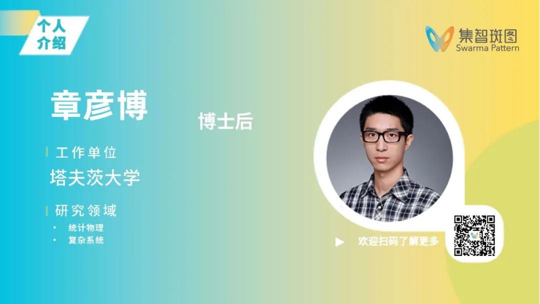 章彦博,美国亚利桑那州立大学复杂系统博士,本科毕业于中国科学技术大学凝聚态物理系,现在塔夫茨大学进行博士后研究,集智科学家,曾在瑞典卡罗琳斯卡医学院进行访问交流。研究方向:统计物理、复杂系统等。他的研究兴趣主要是试图理解我们这个世界的“特殊尺度”。为什么原子会存在?为什么分子会存在?为什么“事物”的概念是一个有用的概念?此外,他还致力于利用化学反应网络探索生命的起源。