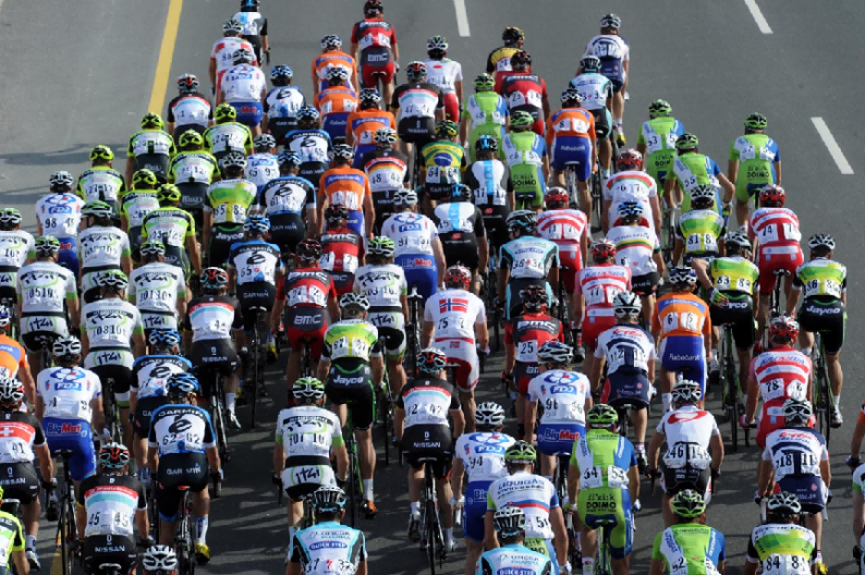 在公路自行车项目中,当许多车手(几十人甚至上百人)以一个大集团的形式前进时,也会产生涌现现象。在自行车大集团中,个体之间存在这样的交互特征:骑手倾向于在集团中部空气阻力较小的位置节省体力,同时也要避免互相碰撞;在比赛的关键节点,骑手会向集团前部移动以获得更好的战术位置。在骑手相互影响下,上百人大集团行进和少数几个车手行进时的动态特征是完全不同的,终点前大集团冲刺的情景就是涌现。