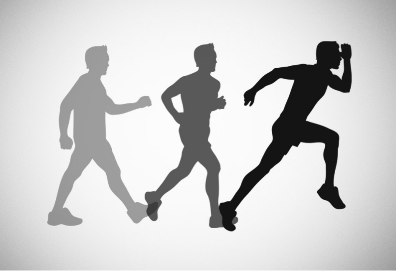 运动中更为直观的相变与临界现象是从“走”到“跑”的过渡。走的动作定义是“两腿交替支撑”,而跑动则需要支撑腿蹬伸以及产生额外的“腾空”阶段。大家可以做一个实验:从慢走开始速度逐渐增加,你会发现当速度达到某个临界值附近,动作开始从“走”向“跑”过渡。奥运会里比较小众的竞走项目正是“走”、“跑”之间临界相变的代表。