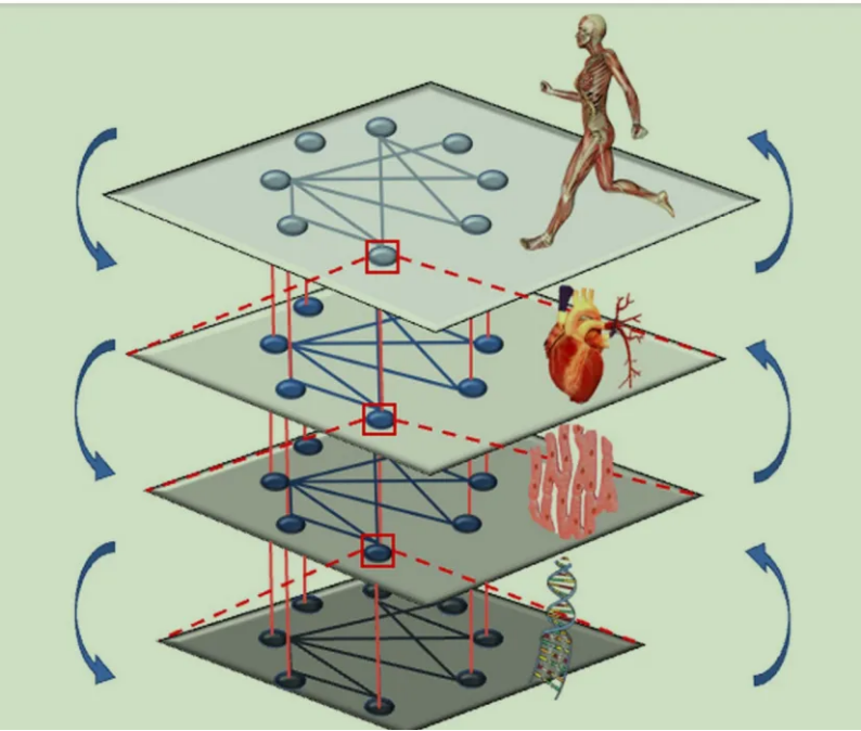 宏观的运动表现与微观的分子层面之间存在巨大的鸿沟。虽然许多分子层面的研究可以建立其与宏观运动表现的相关性,然而运动相关的现象并不能直接从分子的角度去理解。从微观到宏观,是不同层级的复杂网络,受复杂科学的启发,通过运动科学网络可以建立跨越不同层级以及时间尺度的对运动相关现象的理解[1]。