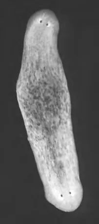 胚胎发育是生物形态发生的一个极端例子,另一个例子是再生。如果有些动物出于某种原因而失去了身体的某些部位,这些部位是可以重新长出来的,比如尾巴乃至四肢。当然,这里也有关于电的故事。莱文选择的实验动物是一种被称为真涡虫的扁虫(与太空扁虫属于同一物种)。这些微型动物的一端长着一个头,上面有眼睛和脑;另一端长着一条尾巴。真涡虫是教师们偏爱的实验动物,因为即便被切成两半,它们也不会死;情况恰恰相反。对此,莱文写道: