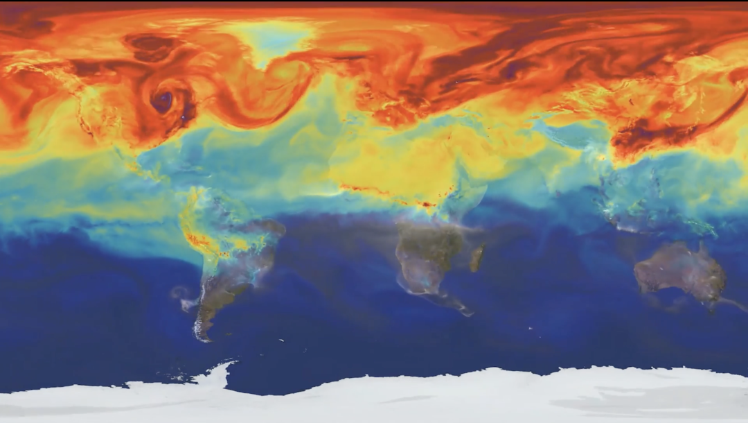 模拟地球气候中二氧化碳运动的计算机模型图示