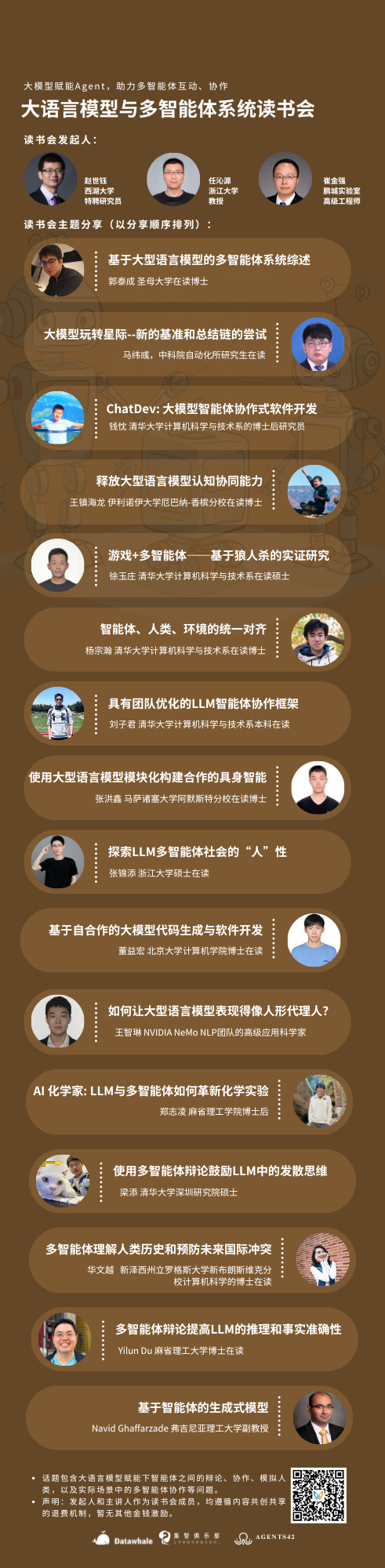 集智俱乐部携手西湖大学工学院特聘研究员赵世钰、浙江大学教授任沁源、鹏城实验室高级工程师崔金强,共同发起了「大语言模型与多智能体系统」读书会。