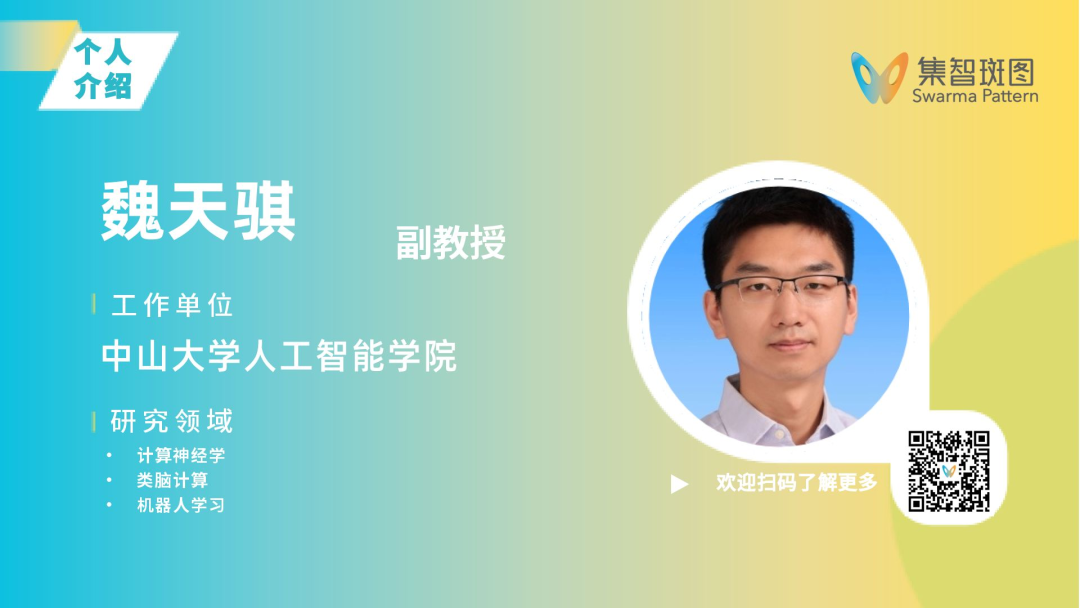 魏天骐,中山大学人工智能学院副教授,硕士生导师。2013年6月毕业于北京理工大学机电学院,获得学士学位,2019年7月毕业于英国爱丁堡大学信息学院,获博士学位。2021年10月入选中山大学“百人计划”青年学术骨干,并于2022年2月加入人工智能学院,担任副教授,硕士生导师。
