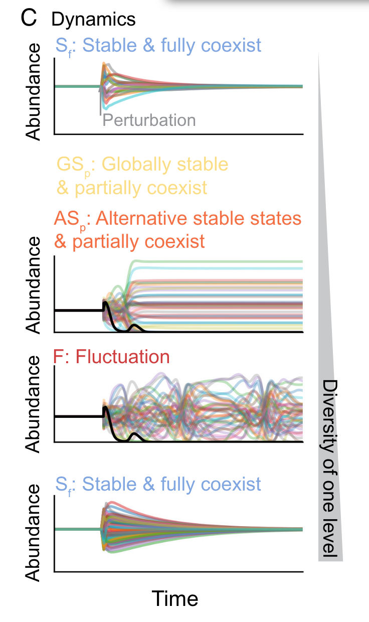 作者利用解析稳定性准则证明,稳定性取决于营养级间多样性差异,受两级间影响与被影响相关性驱动。特别是当营养级多样性接近时,系统最易不稳定。数值模拟显示,这一规律在三层或更多营养级的复杂生态系统中仍适用,表明多样性差异可能是广泛存在的生态稳定性规律。