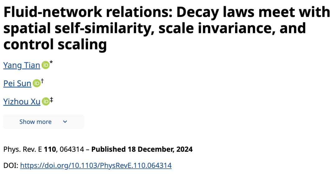 论文题目:Fluid-network relations: Decay laws meet with spatial self-similarity, scale invariance, and control scaling