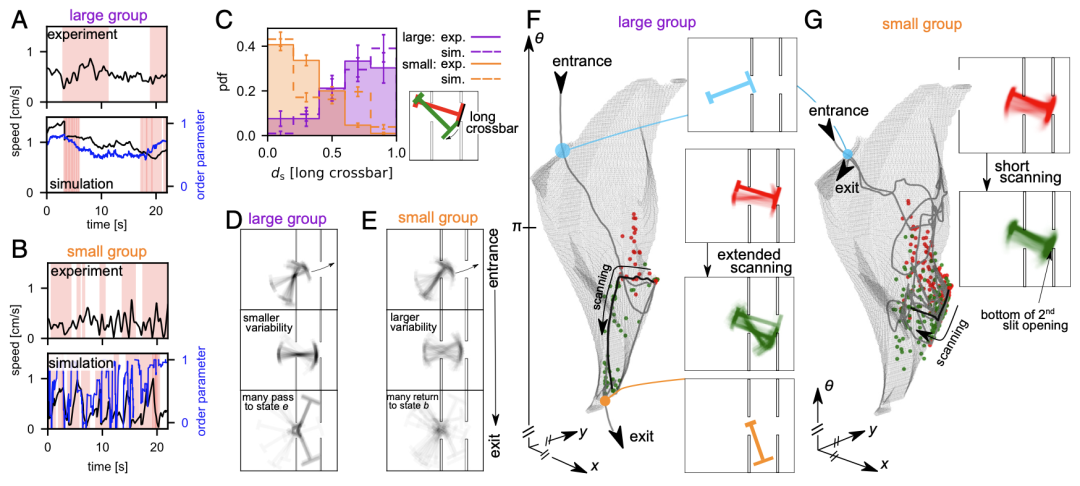 1. 群体规模的影响:对蚂蚁而言,群体规模越大,表现越好。大群体蚂蚁表现出高效的“滑墙行为”,能够持续扫描迷宫边界并找到最佳路径。对人类而言,群体规模并未显著提升表现,尤其在沟通受限的情况下,大群体的表现甚至不如个体。