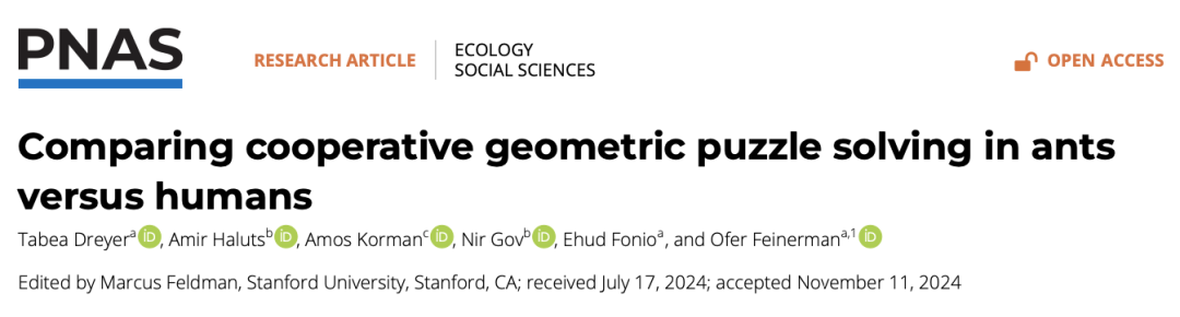 论文题目:Comparing cooperative geometric puzzle solving in ants versus humans