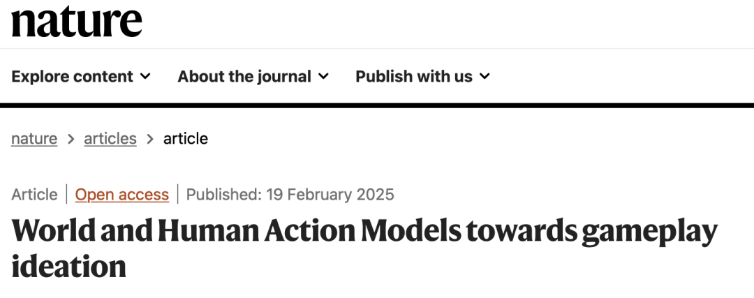 论文题目:World and Human Action Models towards gameplay ideation 发表时间:2025年2月19日 论文地址:https://www.nature.com/articles/s41586-025-08600-3 期刊名称:Nature