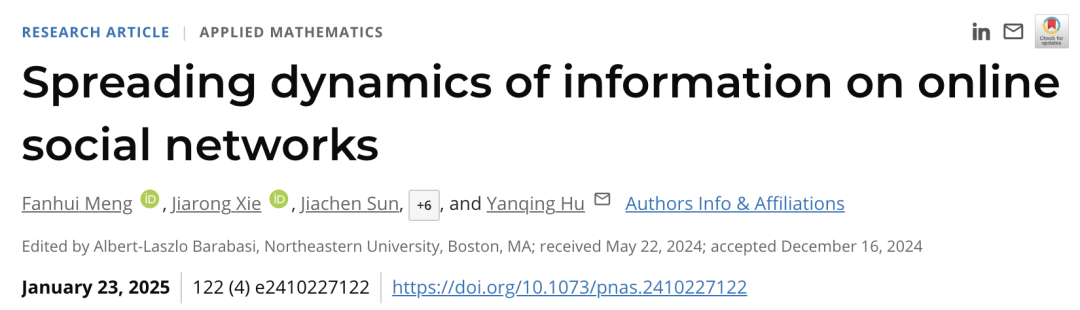 近日,南方科技大学统计与数据科学系副教授胡延庆团队以“Spreading dynamics of information on online social networks”为题在《美国国家科学院院刊》(PNAS)上发表了一项关于社交网络信息传播动力学的重要研究论文。该研究基于国内外各大主流社交媒体平台上累计共74亿用户的传播行为数据,提出了一个能准确描述信息传播机制的简洁的物理方程,解决了该领域长期存在的诸多争议。