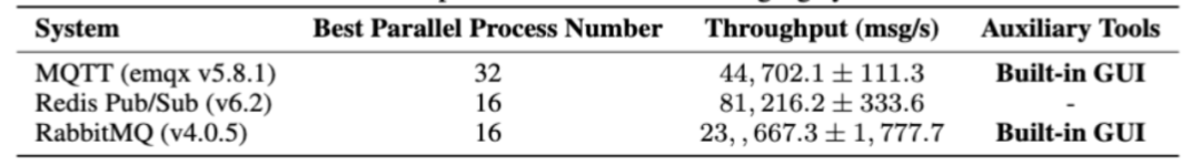 为了评估社会模拟引擎的扩展性和计算效率,团队进行了大规模测试,模拟不同数量的智能体,并测量系统在高并发场景下的表现。在消息通信系统方面,团队测试了 MQTT、Redis Pub/Sub 和 RabbitMQ,比较了它们的并行处理能力、吞吐量(msg/s)和辅助工具支持。实验结果显示,MQTT 和 Redis Pub/Sub 满足高吞吐需求。