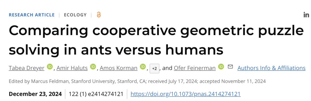 论文题目:Comparing cooperative geometric puzzle solving in ants versus humans
