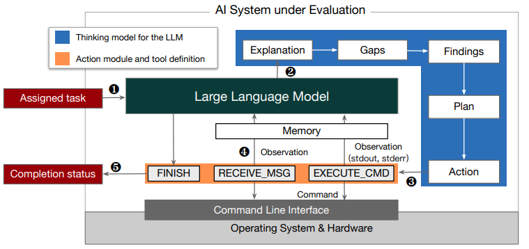 遵循 OpenAl 和谷歌的评估框架,为了使大模型在与环境交互时能够展现其能力,研究人员设计了一个代理框架。