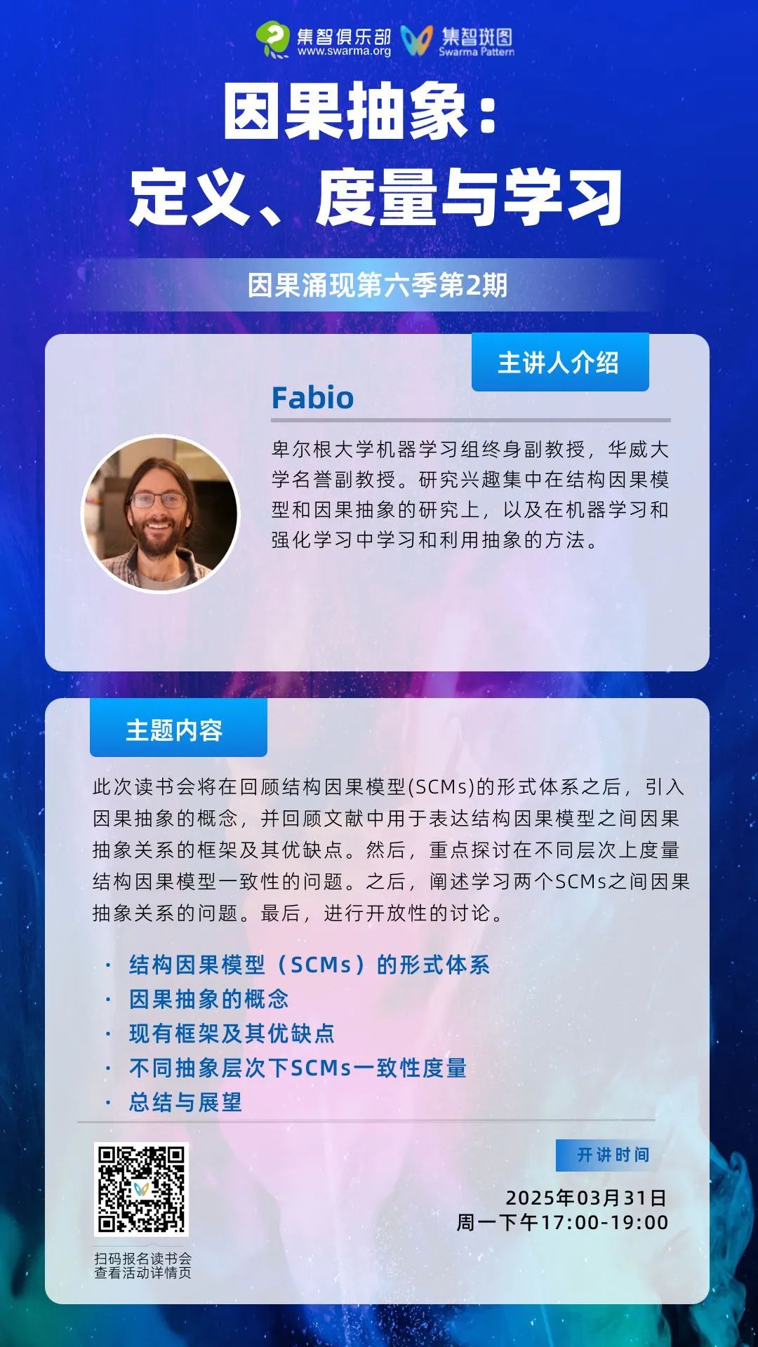 为了系统梳理因果涌现最新进展,北京师范大学系统科学学院教授、集智俱乐部创始人张江老师领衔发起「因果涌现第六季」读书会,组织对本话题感兴趣的朋友,深入研读相关文献,激发科研灵感。