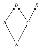给定一个DAG,记为G,那么它所对应的范畴可以用SynG来表示[3]。它不仅可以用来表示确定的因果关系,也可以表示包含随机性的因果关系。下图就是一个例子,它把前文中B←A→C更详细地展开了: