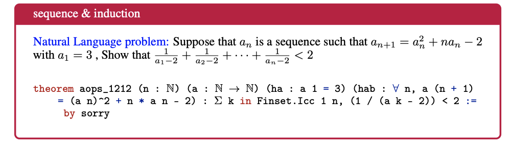 Ying, Huaiyuan, et al. “Lean workbook: A large-scale lean problem set formalized from natural language math problems.” arXiv preprint arXiv:2406.03847 (2024). https://arxiv.org/abs/2406.03847