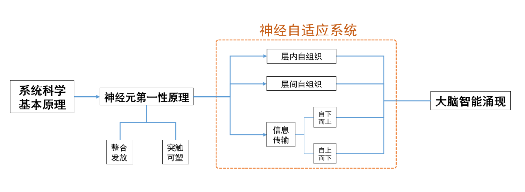 卡哈尔通过改进高尔基染色法发现神经元,标志着脑科学的诞生。伴随着分子生物学的进步,神经元的分子生物基础也得到了大量研究。同时,脑连接组学随着实验技术的进步也得到了长足发展。这些研究都属于基于还原论研究范式下的科学发现和知识积累,仍然缺少对脑神经系统的逆向工程,即缺少对大脑神经元的自组装和结构功能涌现的理解。这是系统科学基本理论施展的舞台。