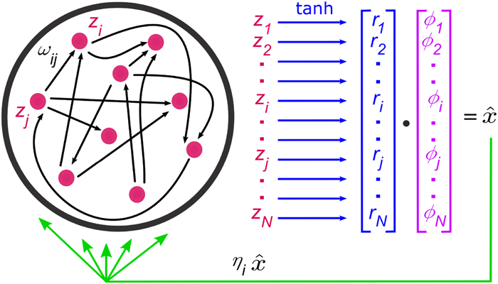 RNN架构,神经元的动力学状态通过tanh机或函数转换成发放率