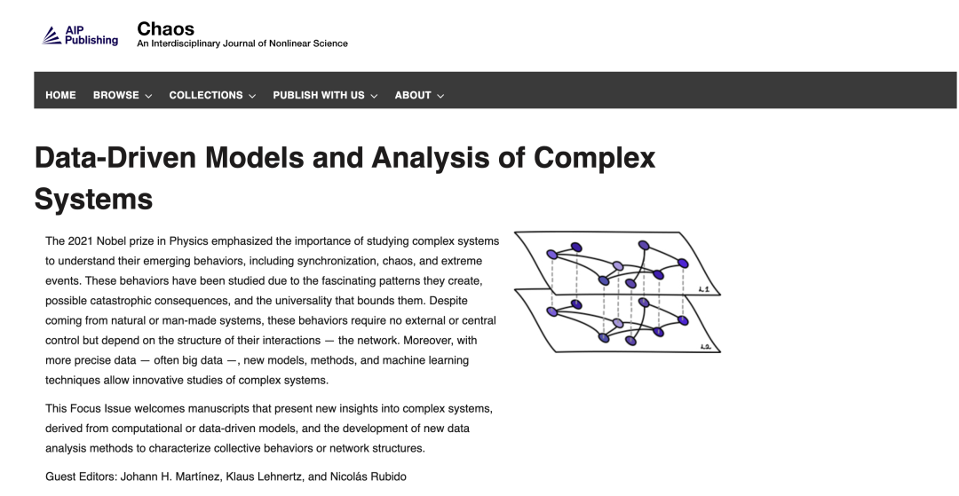 特刊地址:https://pubs.aip.org/cha/collection/13407/Data-Driven-Models-and-Analysis-of-Complex-Systems