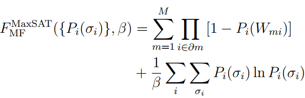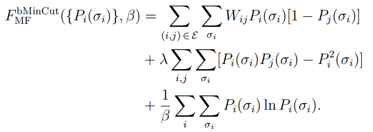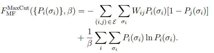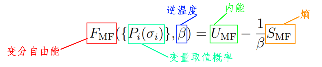 其中Pᵢ(σᵢ)为第i个自旋的边缘概率,通过优化上述两个分布之间的KL距离来实现对问题的求解,而这一目标函数等价于优化以下变分自由能函数: